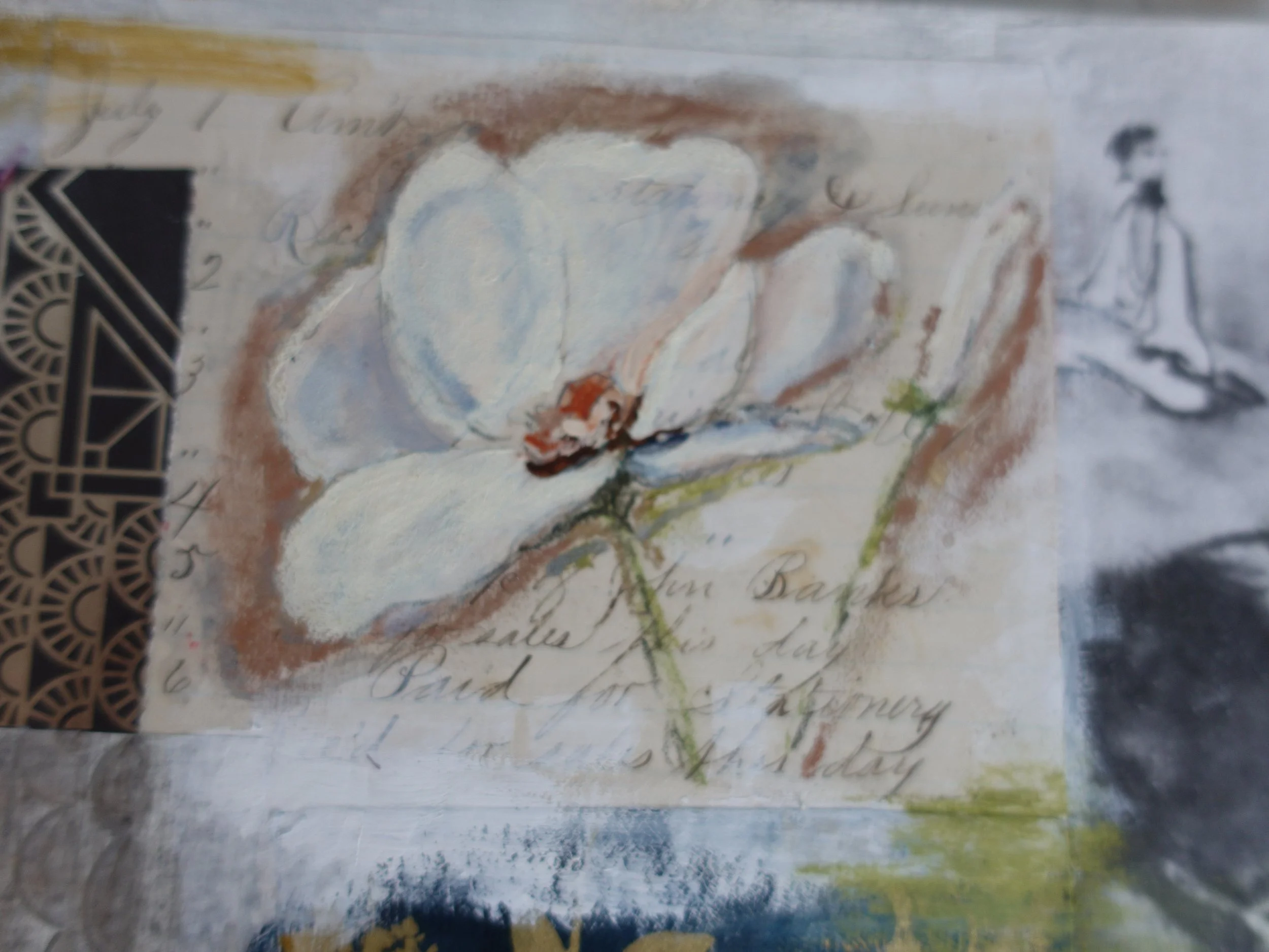 We will choose images from my cache of magazines and use them as a starting point for our collages. We will add paper scraps, ephemera, and hand-painted botanical motifs to wood blocks to create unique artworks.